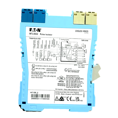 The MTL5532 isolates pulses from a switch, proximity detector, current pulse transmitter or voltage pulse transmitter located in a hazardous area. It is ideal for applications involving high pulse rates and fast response times, by repeating the pulses into the safe area. An analogue output proportional to frequency is also provided, together with a relay output, which may be configured to act as an alarm. Configuration is carried out with a personal computer.